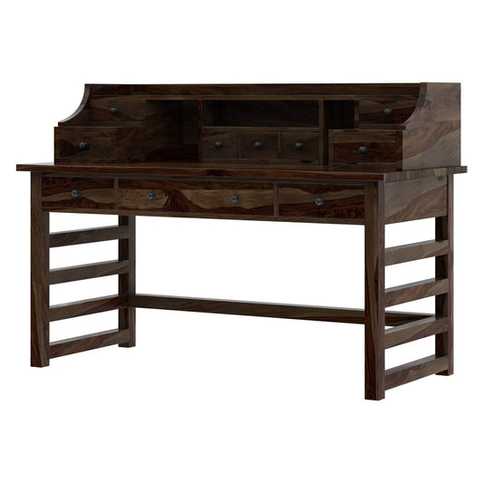 everest solid wood writing desk with hutch in walnut finish