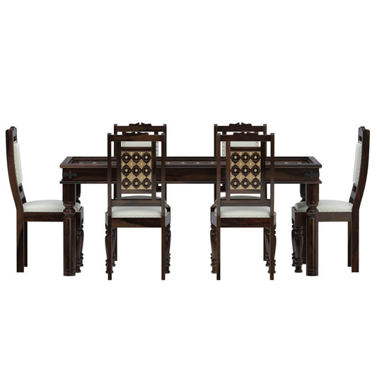 Niksa Royale Solid Wood Brass Inlay Dining Table Set With 6 Chair In Walnut Finish