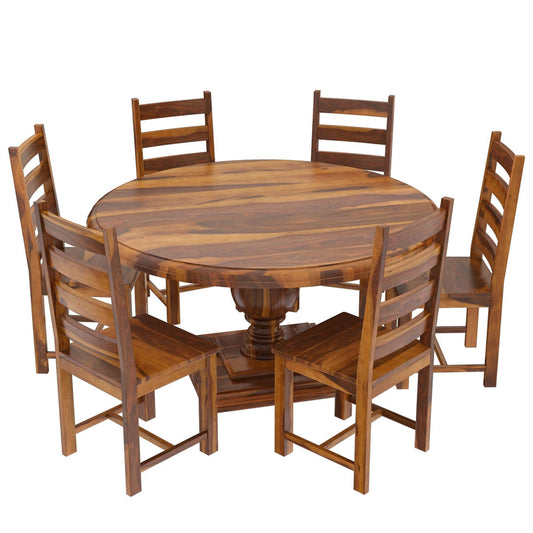 Round Solid Wood Dining Table Set With 6 Chairs In Natural Finish