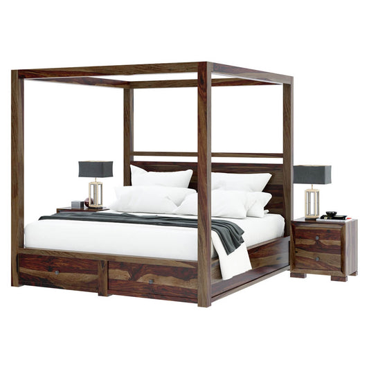 udsar solid wood poster/canopy bed in medium espresso finish with storage