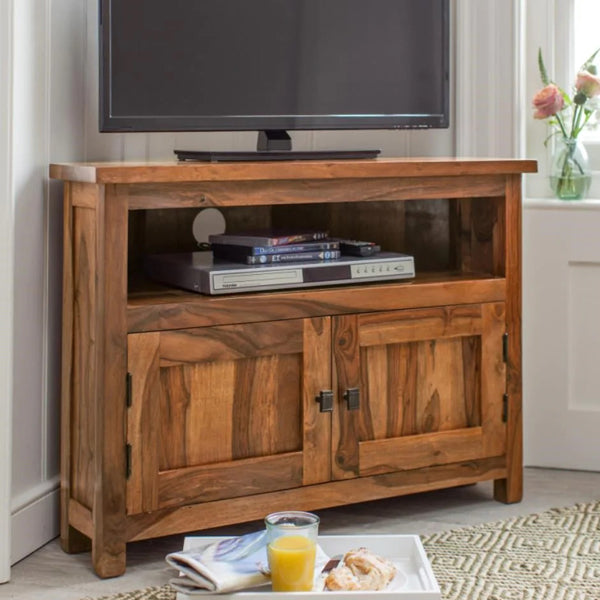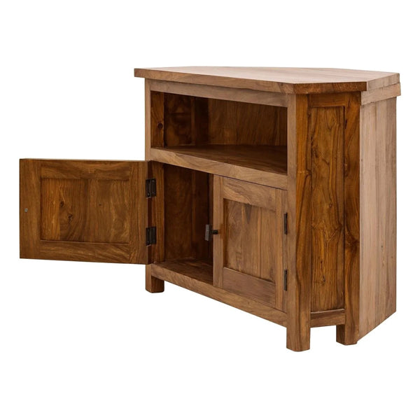It seats elegantly in a corner like a Buddha! This wooden CORNER TV unit is a part of our finest corner Collection.