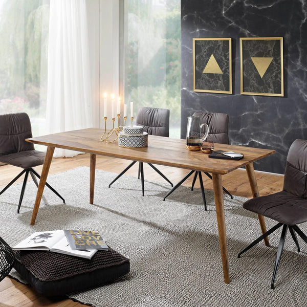 The Eva luxury solid wood dining table is a stunning interpretation of the modern industrial style. This beautiful, solid and well built Indian inspired dining table features a stone finish. Eva will make a statement in any modern industrial style home.
