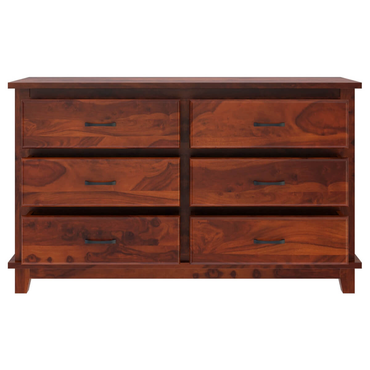 Richly handcrafted in the Old World technique of woodworking, this solid wood double dresser is a wonderful piece to round out your bedroom ensemble while growing your storage capacity exponentially. A timeless design, this rustic dresser works with virtually any decor theme to bring a classy heirloom charm wherever used. This piece imbues any room with a unique charisma, especially when paired with other works in the Rishiya collection including the 1-Drawer Nightstand, Armoire, and Platform Bed.